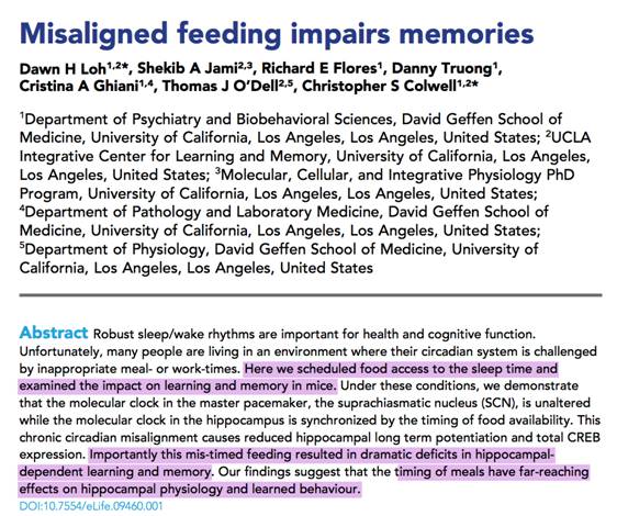 3 Loh, D。 H。 et al。 Misaligned feeding impairs memories。 eLife4, doi:10。7554/eLife。09460 (2015)。