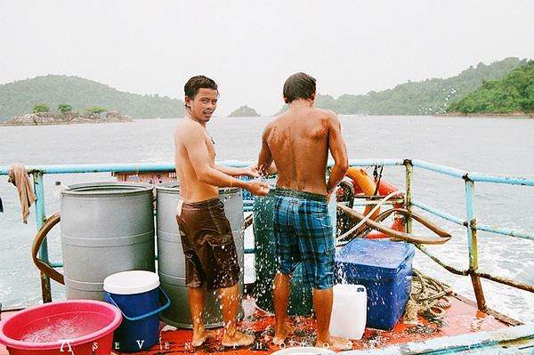 上圖中,匆匆移動(dòng)的站臺人群,緩緩逼近的火車和潛水教練肆意濺起的洗澡水,都讓人從凝固的畫面里,隱約感受到了一絲當(dāng)時(shí)的氛圍,比如火車站獨(dú)有的喧嘩、列車進(jìn)站的嗚鳴聲,以及東南亞夏季燥熱粘濕的空氣。