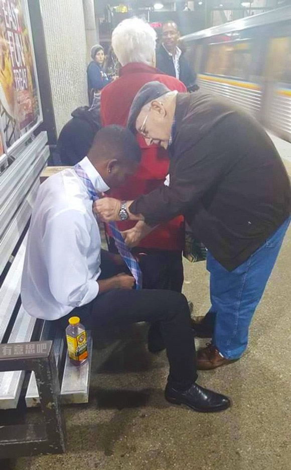 15、老紳士在教一位年輕人打領帶