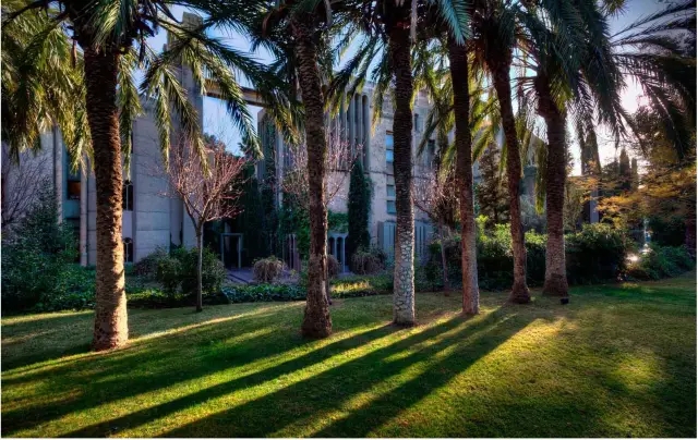 建筑物矗立在布滿桉樹、棕櫚樹、橄欖樹和柏樹