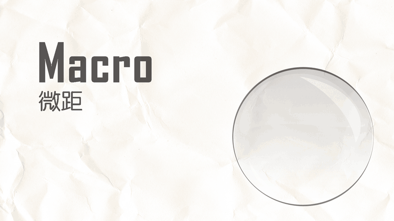 Macro:微距 Macro。有一定放大功能的鏡頭,用于拍攝昆蟲、花夲、以及食品攝影。很多高解析力的鏡頭都帶有一定的微距功能,豪哥的理解就是可以把蒼蠅腿上的毛拍的很清楚的鏡頭...