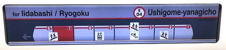 標識也能讓你確認站點,讓你知道自己沒有下錯站。在站點名下方,會顯示一張圖,告訴你處在車廂的哪部分,并且表示出你所處車廂的位置對應車站的什么設施。