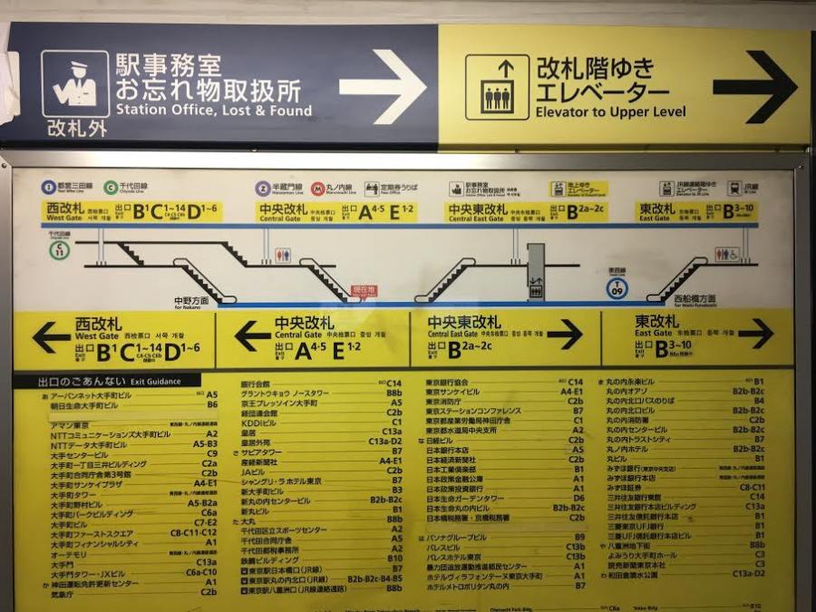 上方:電梯和求助;中間:主要的站點設施和出入口;下方:出口與方向。