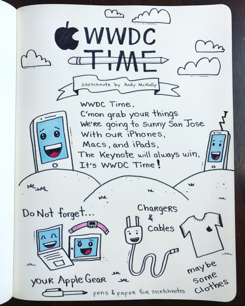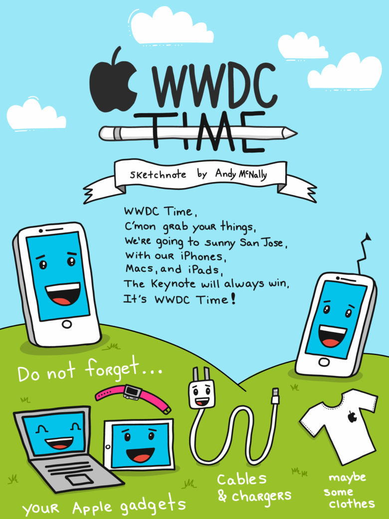 我們應(yīng)該怎么為 WWDC 2017 做準(zhǔn)備呢?我們應(yīng)該帶上哪些東西?我們應(yīng)該準(zhǔn)備什么筆?還有,請務(wù)必記住,我們應(yīng)該帶上所有蘋果設(shè)備以及它們的充電器和數(shù)據(jù)線。 就像我們要出門旅游一樣,我們要迎接一個盛會,總是要準(zhǔn)備很多東西,而插畫師和高級 UX / UI 設(shè)計師 Andy McNally ,就通過非常可愛和萌暖的漫畫插畫形式,為我們帶來了一個與眾不同的 WWDC 2017 準(zhǔn)備攻略。