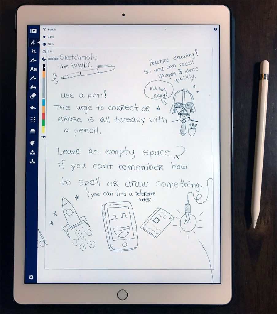 Andy McNally 提到,在這個草圖中,他只是要表達(dá)自己的想法而不是描繪一個現(xiàn)場時間,當(dāng)然,在創(chuàng)作的過程中,他還能使用到 iPad Pro ,對于使用 iPad Pro 來畫畫,相信很多朋友應(yīng)該都不陌生了。